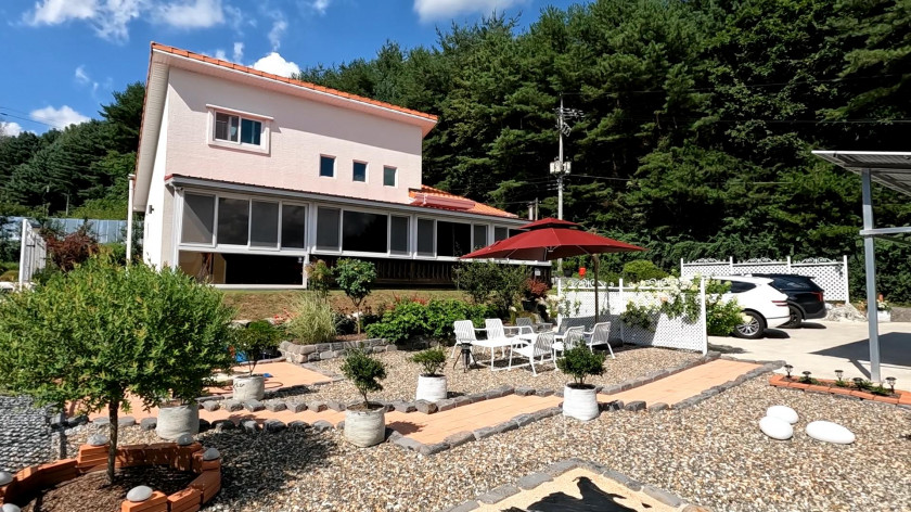강원도 횡성 넓은 썬룸공간과 관리 편한 이쁜 정원이 있는 정남향 전원주택