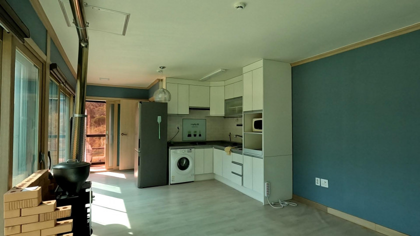내부 구조 : 주방과 화장실이 있는 원룸 구조