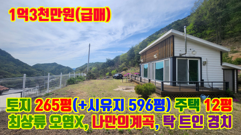국유림에 둘러싸인 오염 없는 계곡과 경치 좋은 유해시설 없는 다른 사람의 간섭 없는 마을 맨 끝 마지막에 위치한 독립적인 소형 주말 전원주택을 찾으셨다면 추천드립니다.