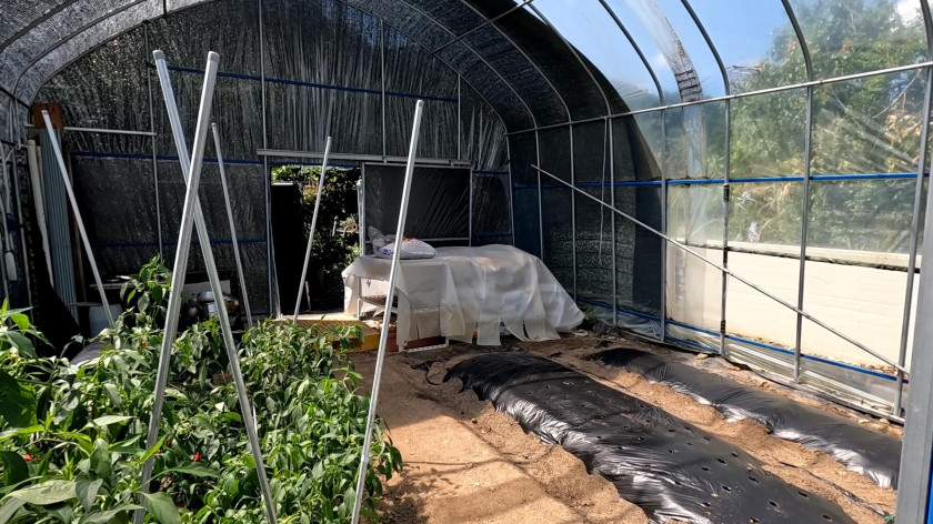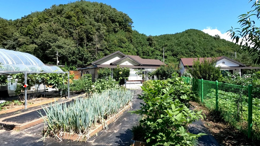 농지에는 작물 종류별로 텃밭으로 사용하는 공간을 구분하고 나머지 공간은 잡초 매트를 시공해서 깔끔하게 농사짓고 이동할 수 있도록 하였으며, 비닐하우스가 설치되어 있습니다.