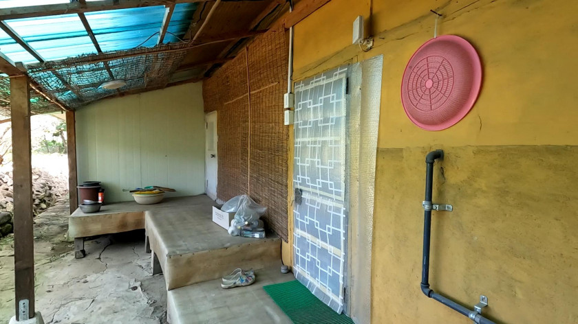 내부는 방 2, 화장실, 거실 겸 주방, 다용도 공간, 처마 공간, 아궁이 공간 등으로 되어 있으며, 방 2개 중 1개는 아궁이 난방으로 사용하고 있습니다.
