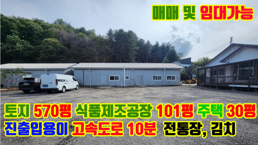 고속도로 10분 거리 진출입 용이한 식품가공시설 2동과 사무실 가능 거주주택 매매 및 임대
