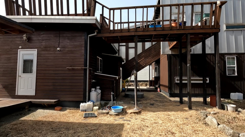 주택은 일반목구조로 외부 마감은 징크 및 방부목으로 되어 있습니다.