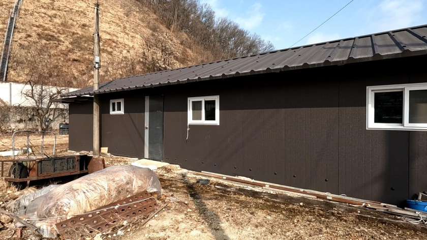 외부의 창고는 예전에 축사로 사용했던 건물을 리모델링하여 창고로 사용하고 있음