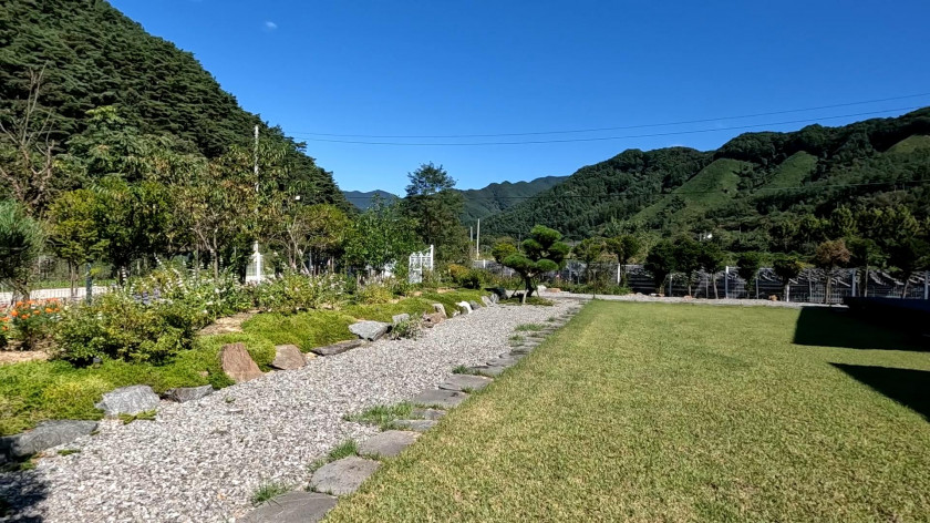 정원과 텃밭, 조경수들 또한 너무 잘 꾸몄으며, 토지 전체에 휀스가 설치되어 있습니다.