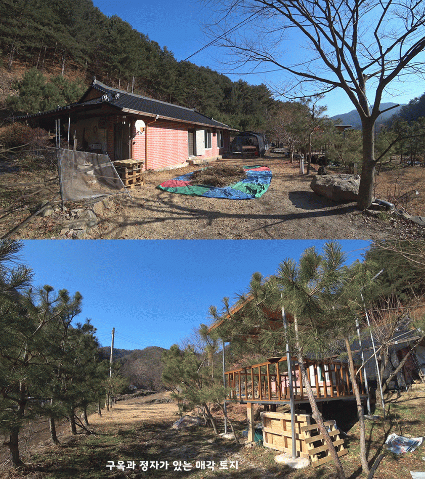 현재 매각 토지에 1945년에 흙벽돌로 건축한 무허가의 약 20평 구옥 한 채와 비닐하우스 한 동, 정자 한 채가 있고 구옥은 내부에 방 2, 거실, 주방, 화장실로 구성되어 있습니다.