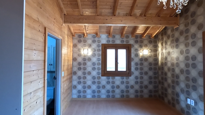 3층 9평(일반 목구조) - 방, 화장실, 드레스룸으로 되어 있고 야외 외부 테라스가 있음