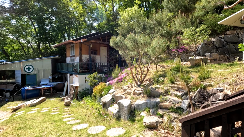 주택 옆에는 미등기된 3면에 창이 있는 황토 찜질방이 있어 찜질하며 자연 뷰를 즐기기 매우 좋아 지인분들이 매우 좋아하는 공간으로 사용 중.
