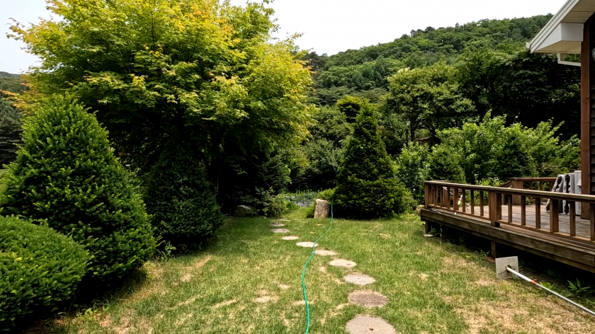 대지 옆으로는 길게 마르지 않는 작은 개울물이 흐르고, 그 옆으로 연못이 조성되어 있습니다.