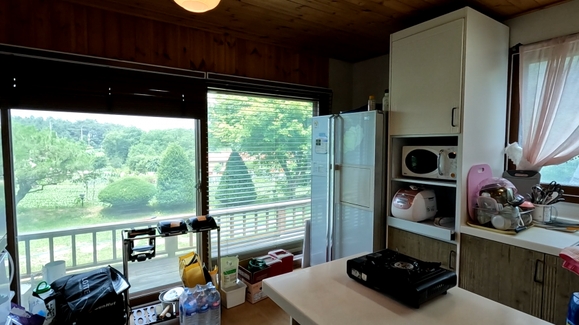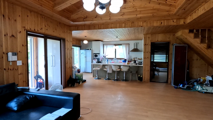 매도인분이 골프 치시고 별장 용도로 지인분들과 사용하기 위해 거실과 주방을 최대한 크게 구성하고, 큰 창을 두어서 밖의 전경을 감상하기 좋도록 하였습니다.