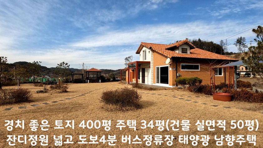 특히 400평의 유실 없이 넓은 토지와 넓은 주택으로 경사지가 없어서 겨울에 눈이 와도 생활하기 좋고, 버스정류장도 가까이 있어 생활 편의성이 좋습니다.