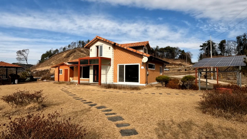 건강 치유에 좋은 황토 벽돌 구조 태양광 설치된 넓은 마당 텃밭 있는 강원도 홍천 수타사 인근 전원주택 34평 토지 400평 매매