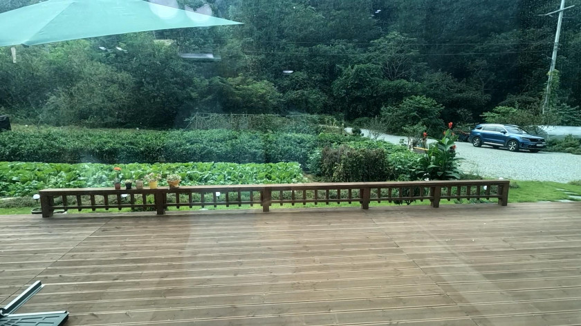 주택 앞쪽 전면을 넓은 데크를 설치하여 야외에서 생활하기 좋도록 되어 있습니다.
