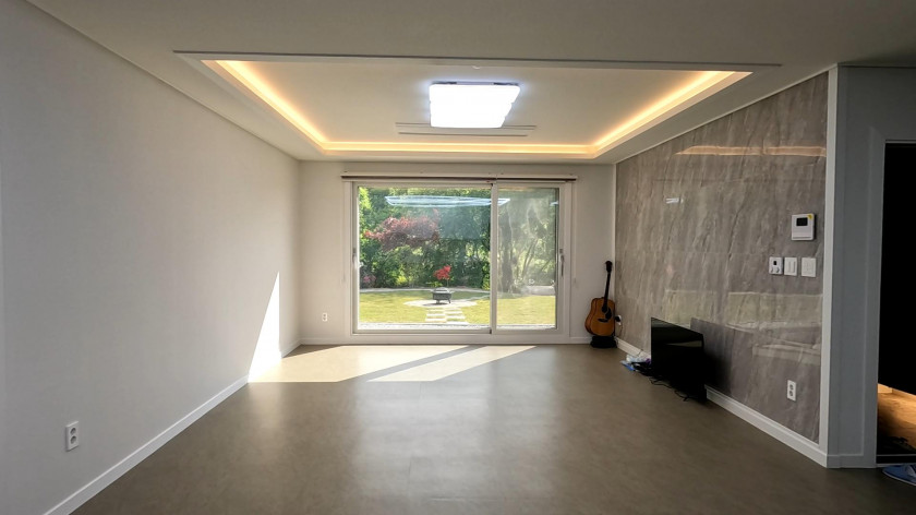 창호는 LG하우시스 정품 창호를 사용하여 단열이 좋고, 거실과 방 천장에 시스템에어컨이 설치되어 있습니다.