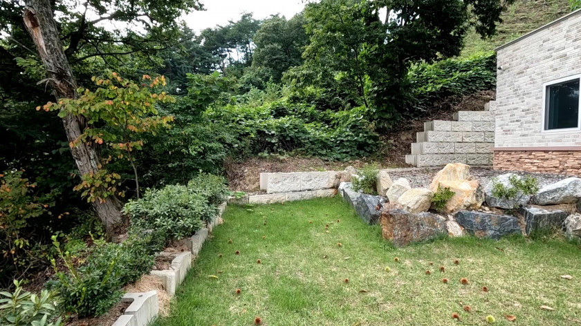 특히 도로 지분 이외에 경사면 유실이 거의 없어서 웬만한 전원 단지의 200평 초반대와 비슷한 토지 면적이며, 한쪽 면 전체가 산에 접해 있어서 아늑하면서도 경치가 좋은 홍천 전원주택입니다.