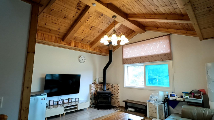 천장고도 높고 거실에는 벽난로가 설치되어 있습니다.