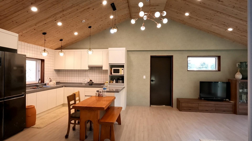1층은 23평으로 방 1, 화장실 2, 거실, 주방으로 되어 있고, 내부계단을 통해 올라가는