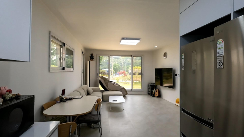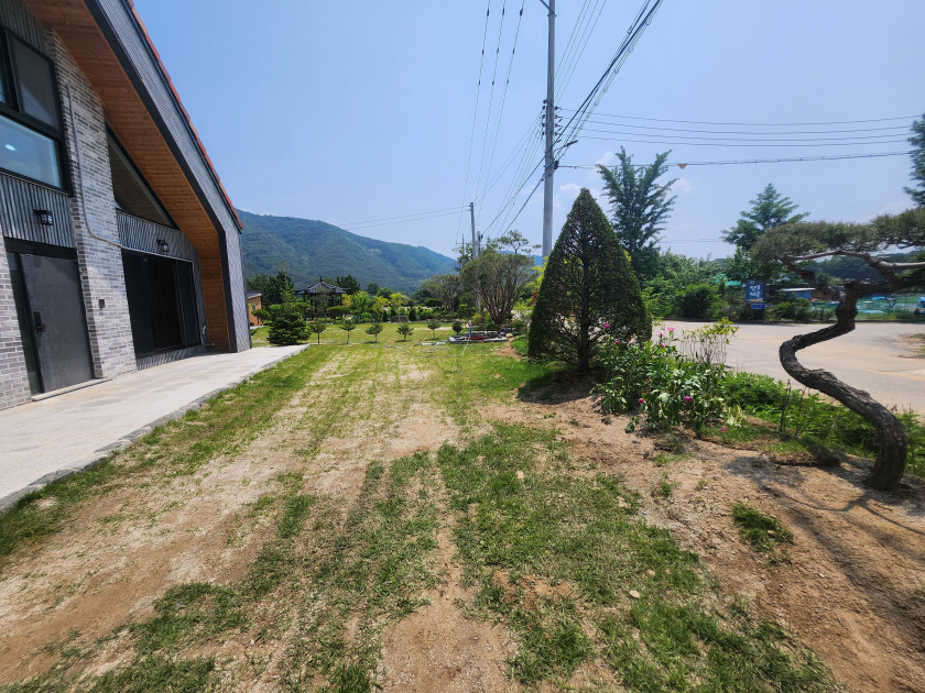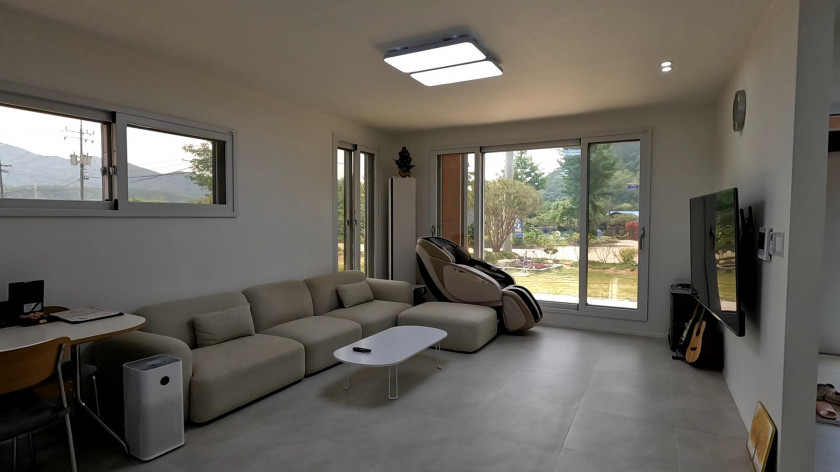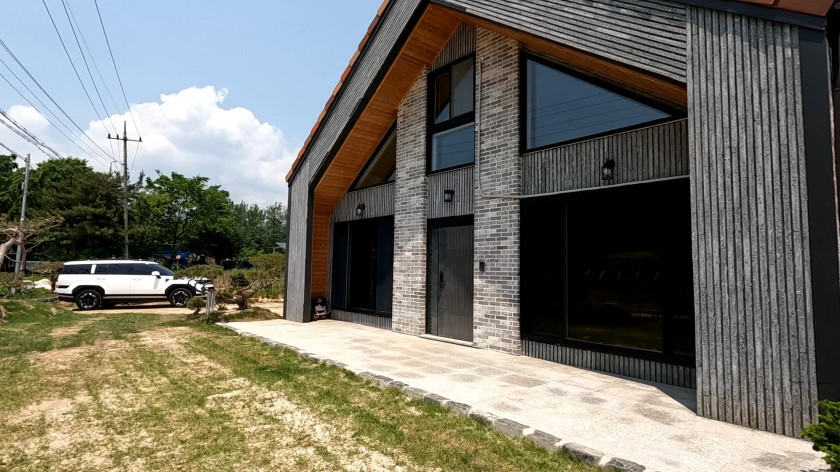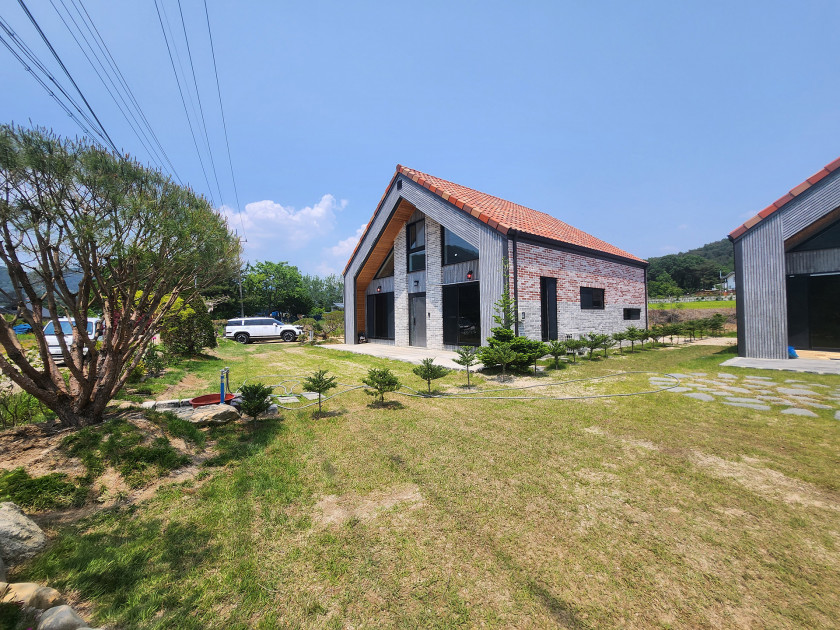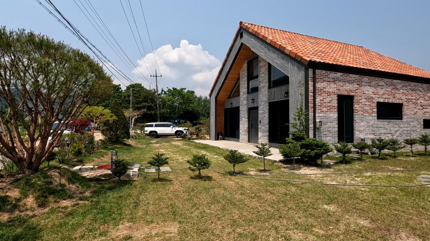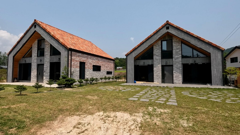 건물은 신축주택으로 조경업과 건축업을 오래 하신 주인분이 한 채는 본인 거주 용도로 다른 한 채는 독채형 펜션으로 운영하려고 건축하였습니다.