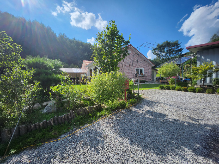 생활환경 좋은 횡성 전원주택 34평과 정남향의 산으로 둘러싸인 경치 좋고 공기 맑은 토지 496평