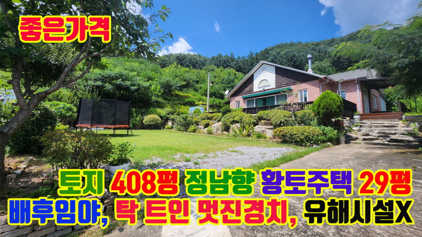 청정한 마을 마지막에 위치한 경치좋고 텃밭넓은 정남향 황토주택 매매