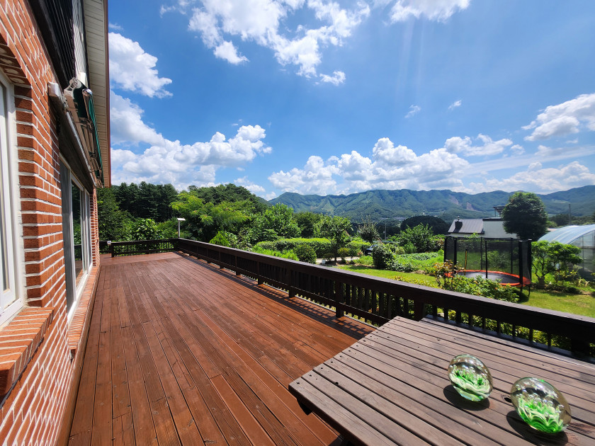 데크나 거실에서 보이는 경치가 수려하며, 공기가 맑고 청정한 곳입니다.