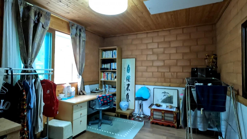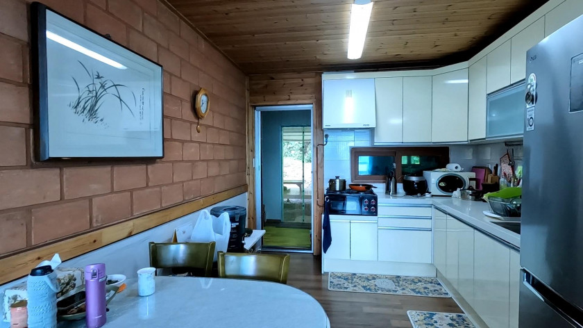 주택은 긴 직사각형 형태로 거실과 주방이 넓게 되어 있고, 내부는 황토 벽돌로 마감하고 외부는 벽돌로 마감하였습니다.
