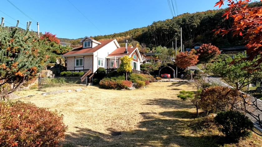경치가 매우 좋은 조경수와 정원이 잘 관리된 이쁜 홍천 전원주택 매매