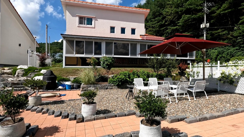 강원도 횡성 넓은 썬룸공간과 관리 편한 이쁜 정원이 있는 정남향 전원주택