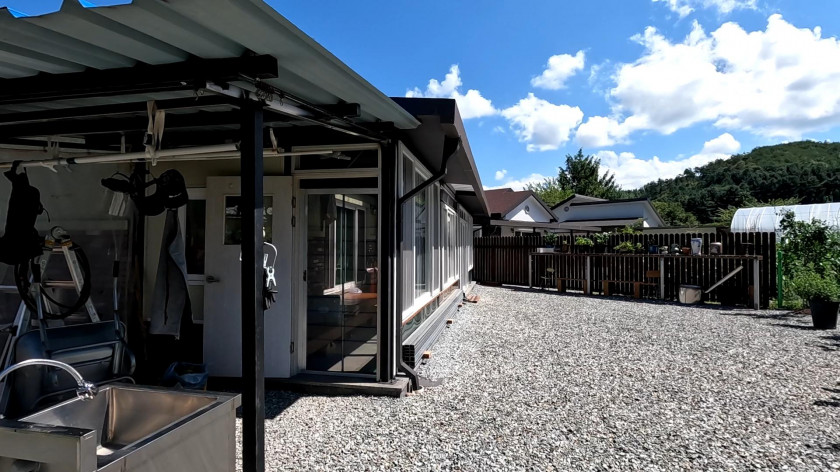 대지에는 마당과 주차공간 모두 잡석을 두껍게 깔아서 잡초관리를 할 필요 없이 깔끔하고 편하게 관리할 수 있도록 하였고,