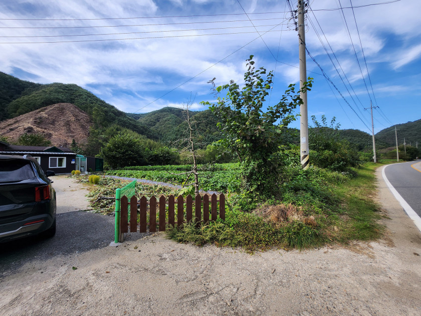 토지 뒤쪽으로는 도보로 1~2분만 내려가면 넓은 계곡이 인접해 있고, 토지의 앞쪽과 뒤쪽은 모두 국유지에 접해 있는 점도 장점입니다.