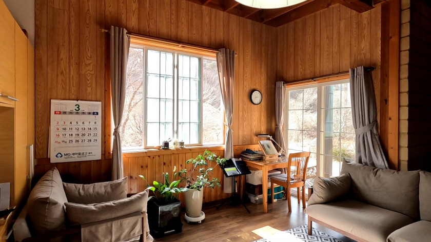 주택 내부는 원목의 느낌을 그대로 살려서 아늑한 느낌과 따뜻한 느낌이 매우 좋고, 볕이 잘 들어 옵니다.