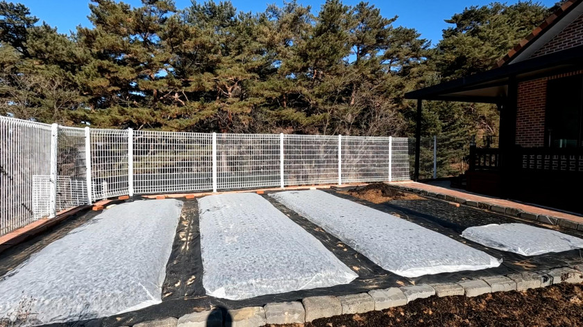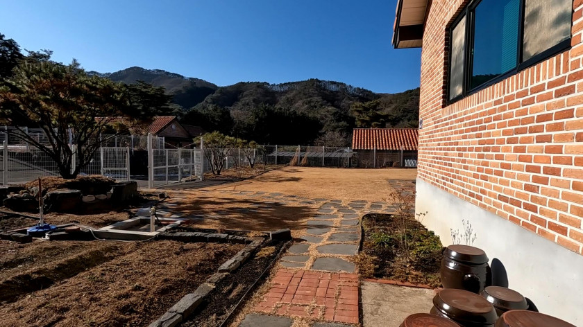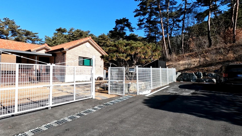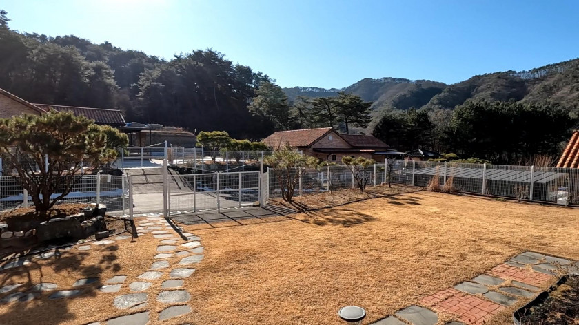 토지의 경계를 따라 휀스가 모두 설치되어 있고, 대형견을 키울 수 있도록 높이가 있어서 반려견과 아이들이 안전하게 전원생활을 즐기기 좋음