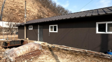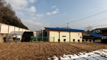 외부의 창고는 예전에 축사로 사용했던 건물을 리모델링하여 창고로 사용하고 있음